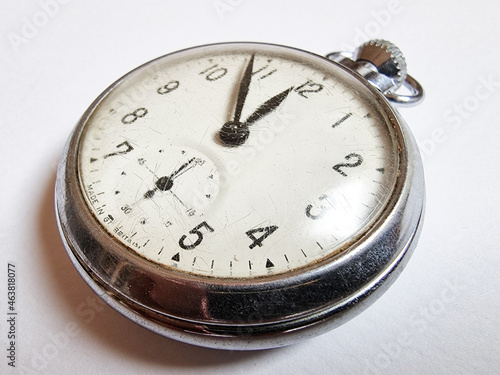 Vintage old pocket watch on white background.