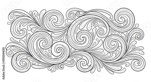 Vintage Ornamental Scrollwork Design, Elegant Decorative Flourish Pattern, Black and White Illustration