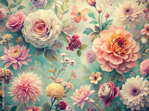 Vintage Pastel Flower Boho Animal Print Illustration - Soft Floral Design