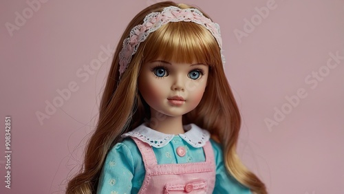 vintage, porcelain, doll, brown hair, blue eye, indoor, charming, antique, collectable, craftsmanship, nostalgia, detailed, decorative, setting, expression, art, personality, childhood, memory, toy, doll, hand-made, portrait, classic, elegant, timeless, beautiful, heirloom, unique, traditional, retro, character, facial features, display, artistry, innocent