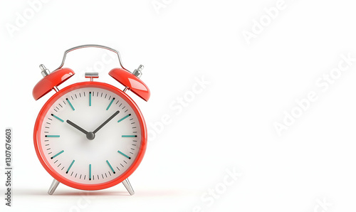Vintage Red Alarm Clock on a Clean White Background, Time Concept