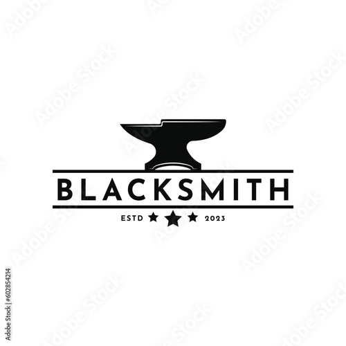 vintage retro anvil blacksmith logo design template