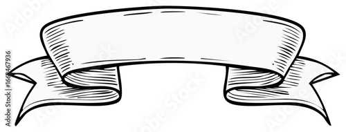 Vintage Ribbon Banner Hand Drawn Style Black and White Design Element