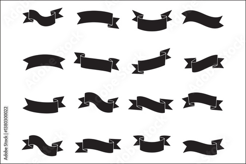 Vintage Ribbon Banner Set – Classic Vector Silhouette Pack Retro Ribbon Vector – Decorative Banner Silhouette Collection Elegant Ribbon Banners – Vintage Scroll & Label Vector Set Hand-Drawn Ribbon
