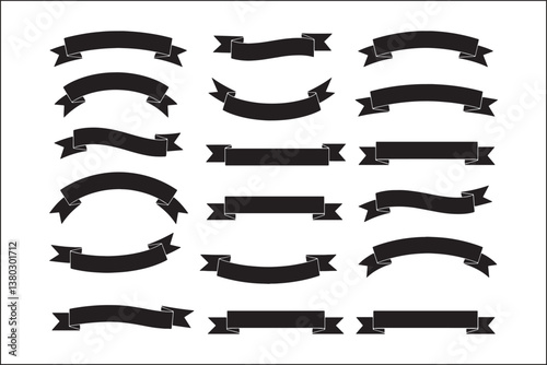 Vintage Ribbon Banner Set – Classic Vector Silhouette Pack Retro Ribbon Vector – Decorative Banner Silhouette Collection Elegant Ribbon Banners – Vintage Scroll & Label Vector Set Hand-Drawn Ribbon