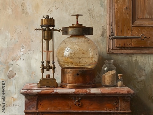 time, art, light, old, instrument, detail, measurement, texture, research, still life, masterpiece, realism, painting, historical, laboratory, experiment, shadow, physics, discovery, glasses, astronomy, precision, alchemy, vintage, metal, table, chemistry, composition, wood, antique, scientific instrument, science