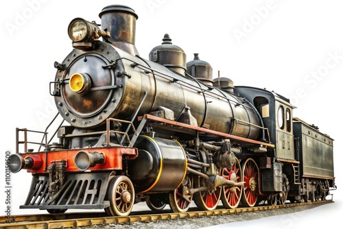 Vintage steam locomotive on a white backdrop, embodying classic train aesthetics perfect for nostalgic themes, retro travel, and historical railway imagery. Timeless transportation iconography.