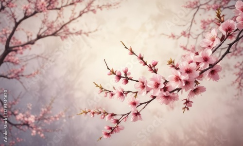 Vintage style watercolor painting of cherry blossom branches, botanical, nature, retro