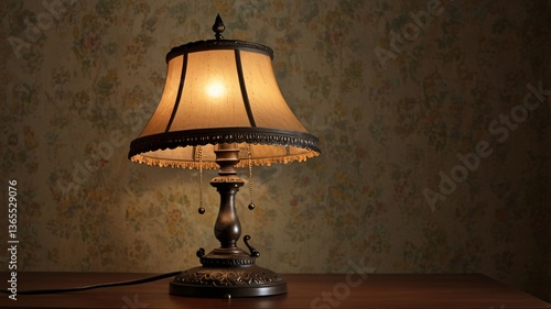 lamp, light, table, home, shade, room, interior, furniture, bedchamber, hotel, night, decor, desk, design, bulb, wall, house, lampshade, lighting, electric, object, vintage, decoration, table lamp, living
