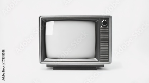 Vintage television isolated on a white background, flat lay, with a white blank screen.