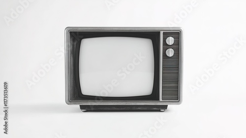 Vintage television isolated on a white background, flat lay, with a white blank screen.