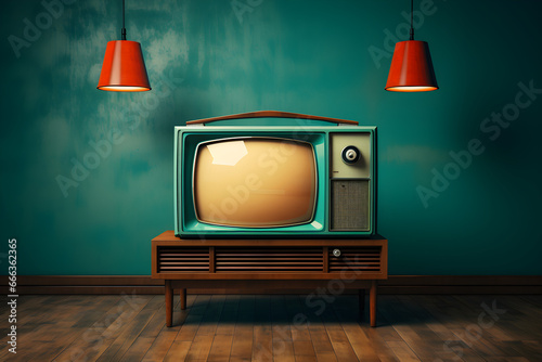 Vintage television with colorful display and artificial intelligence technology