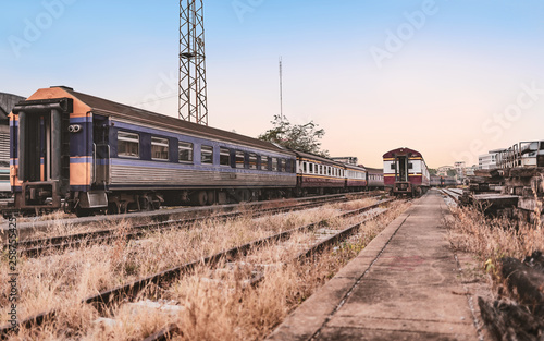 vintage train warehouse in sunset