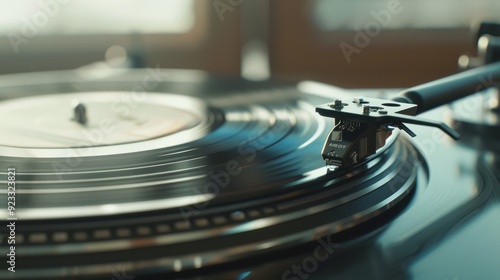 Vintage turntable needle hovering over a spinning vinyl record, capturing a sense of nostalgia and the love of analog music.