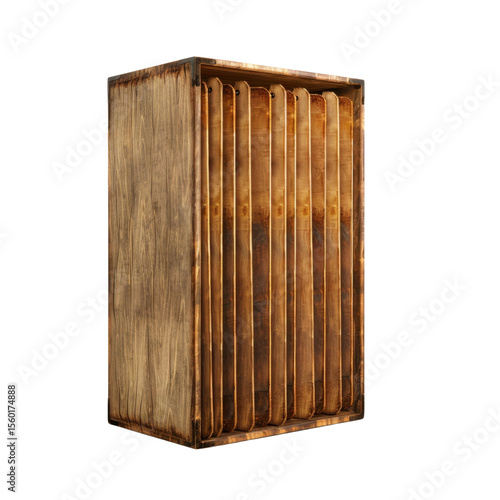 Vintage wooden cabinet with rustic finish, featuring multiple slatted doors that add character and charm to any space
