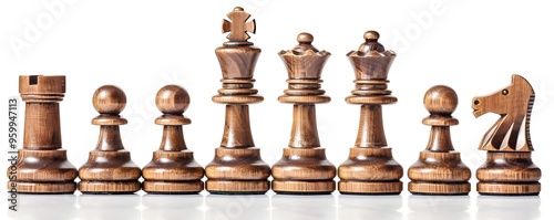 Vintage Wooden Chess Set Positioned for a New Strategic Game on Isolated White Background