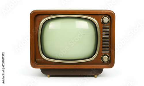 Vintage wooden television set, retro style, blank screen, isolated on white background. Perfect for nostalgic designs, media, or technology-themed projects.