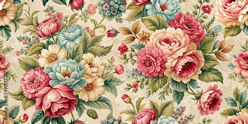 Vintage-inspired chintz pattern with large, detailed flowers , retro, floral, textile, background, design, colorful, vintage