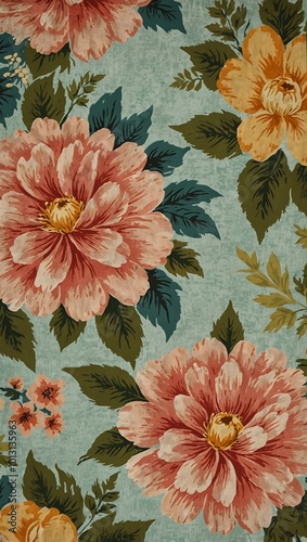 Vintage-inspired floral pattern on elegant pastel fabric.