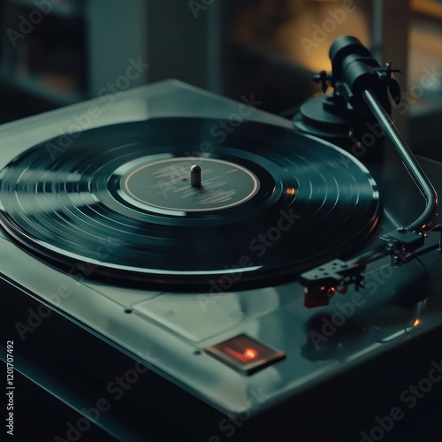 Vinyl record spinning on a turntable.