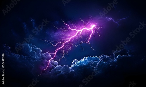 Violet Storm Fury, a vivid purple thunderbolt illuminates the night sky, crackling with energy and intensity, nature's raw power on display.