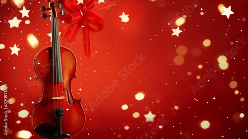 fiddle, polished, wooden, red, background, glowing, white, star, instrument, classic, elegant, contrast, warm, rich, shine, string, bow, vibrant, composition, music, classical, viola, musical instrument