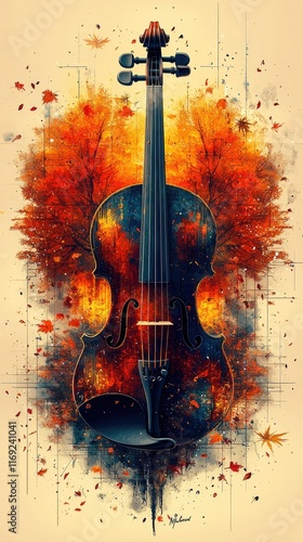 fiddle, music, autumn, leaf, fall, tree, nature, art, design, image, illustration, graphic, abstract, background, colourful, vibrant, red, orange, yellow, brown, wood, string, instrument, melody, harmony, season, landscape, painting, digital, artwork, creativity, fantasy, beauty, romantic, elegant, majestic, serene, peaceful, quiet, tranquil, stillness, solitude, colours, splash, texture, detail