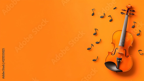 Violin on orange background with musical notes; perfect for music-related designs or websites