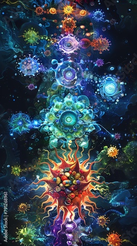 Viral Pathogenesis depicted in a series of magical spells and incantations, each representing