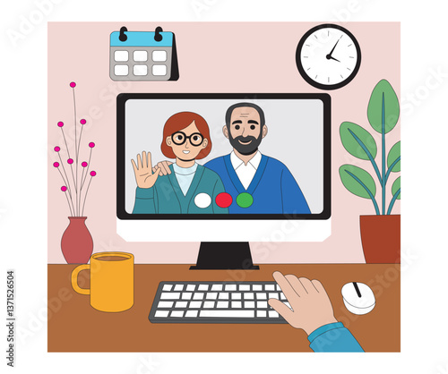 Virtual Family Video Call Illustration. Online Communication and Connection Concept. Happy Family Video Chat. Virtual Meeting and Online Communication Concept Illustration.