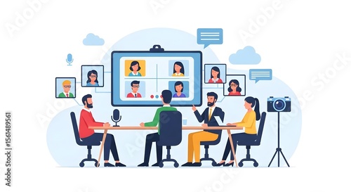 virtual, meeting, collaboration, remote, work, teamwork, communication, goal, interaction, share, partnership, sharing, networking, achieve, progress, efficiency, learn, planning, leadership, improvement, conference, solution, discussion, idea, project, innovation, management, workplace, chat, united, presentation, community, connect, grow, global, team, future, video, result, network, earth, screen, development, information, together, laptop, tool, success, growth