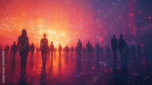 silhouette, connectivity, social network, business, cyberspace, global, technology, futuristic, information, communication, cyberspace, artificial intelligence, people, silhouette, crowd, group, vector, party, team, man, music, illustration, city, businessman, concert, night, woman, sunset, disco, black, light, dancing, person, walking, businesswoman