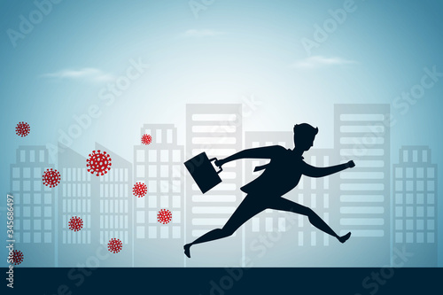 Viruses escape concept, businessman running with city background