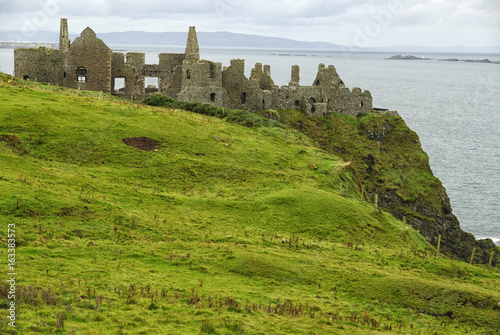 Vista panoramica dell'antico castello diroccato di Dunluce, Irlanda