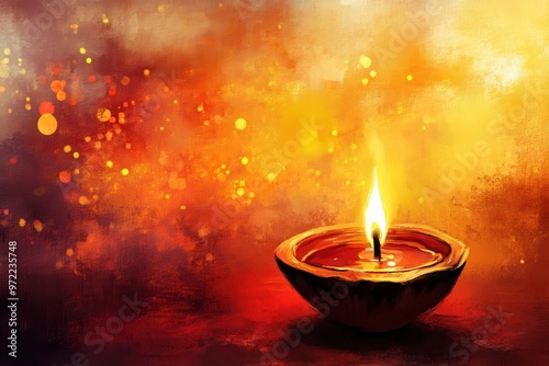 Visual depiction of a glowing oil lamp against a vibrant diwali backdrop celebrating the festival of lights in india