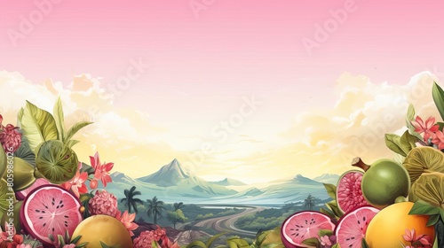 header, feast, high-coloured, soft, abundance, lush, paint, vibrant, orange, design, sky, detail, colourful, flower, tropical, kiwi, pink, water, bright, background, food, landscape, mango, mountain, vibe