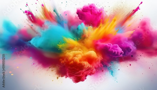 Vivid Colorful Powder Explosion on White Background A Joyous Holi Celebration in a Symphony of Colors and Textures