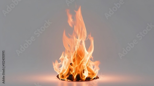 Vivid fire flames on a white background, showcasing dynamic and intense heat. Perfect for adding energy and intensity to any design, project, or presentation requiring a fiery, burning effect.