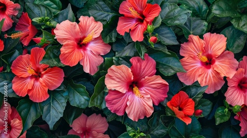 Vivid hibiscus flowers in a tropical garden, generative ai