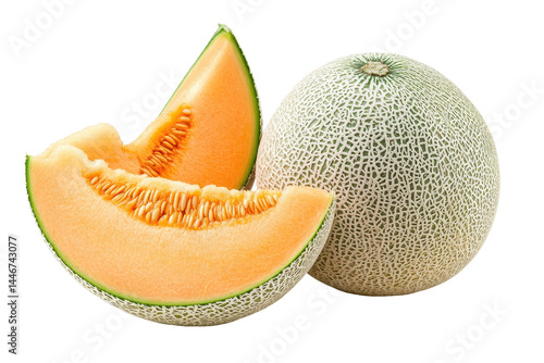 cantaloupe, fruit, slice, segment, orange, yellow, green, pale, light, fresh, healthy, alimentary, vitamin, food, summer, juicy, delicious, sweet, natural, ripe, halved, slice, tropical, edible, foodstuff, produce, piece, section, wholesome, flesh, seed, close, detail, isolated, background, studio