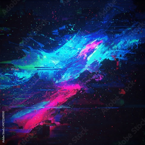 glitch, cosmic, neon, blue, magenta, space, abstract, digital, energy, streak, vibrant, futuristic, tech, star, motion, warp, surreal, colourful, galaxy, visual, light, glow, bold, dynamic, fantasy, explosion, digital artwork, nebula, star, sky, universe, night, astronomy, cosmos, dark, science, supernova, moon, planet, cloud, dust, pattern, alien