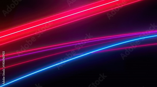 Vivid neon lights in pink blue and purple arcs illuminate a dark environment creating an electrifying atmosphere during a nighttime event