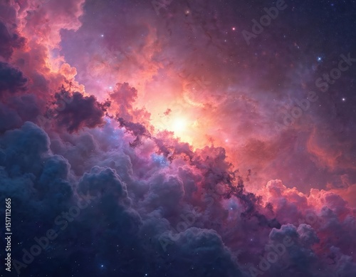 Vivid space galaxy cloud nebula. Starry night cosmos featuring universe science astronomy. Supernova background wallpaper with bright stars. Colorful cosmic clouds, celestial bodies explore