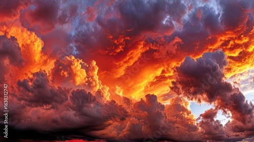 Vivid sunset sky with dramatic orange and purple clouds creating a striking natural scene