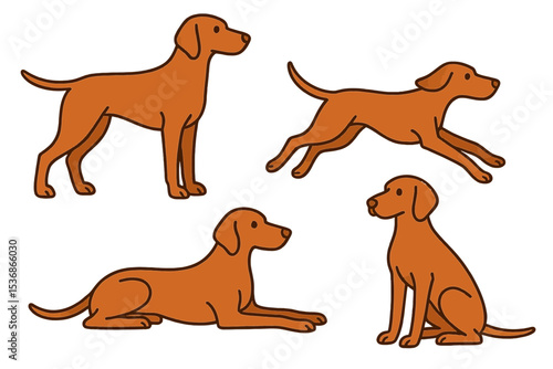 dog, orange, vizsla, standing, running, lying, sitting, illustration, pet, animal, canino, cute, character, furry, domestic, playful, joy, motion, energy, friends, companion, pet, expression, nature, breed, love, loyalty, movement, design, graphic, artwork, fun, active, cartoonish, personality, friendly, 4, vignetting, drawing, visual, background, outline, minimalistic, quality, creative, lively