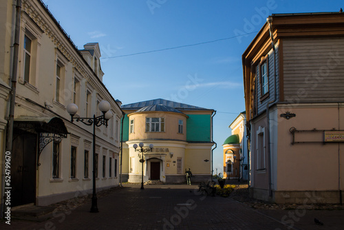 Vladimir, Russia - AUGUST, 17, 2022: the historic building of the old pharmacy in the alley of the historical part of the city on a sunny summer day