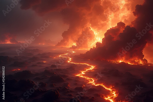 volcano, lava, eruption, flow, photo, fiery, fire, molten, heat, smoke, explosion, dramatic, scenic, terrain, beauty, vibrant, colours, danger, glowing, earth, force, natural, phenomena, stunning, awe, visual, captivating, dynamic, atmosphere, impact, sky, high-coloured, motion, disaster, adventure, risk, spectacle, element, power, capture, intensity, planet, ground, vision, illumination, boiling, extreme, media