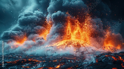 volcano eruption, explosive lava flow