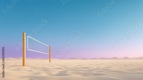 Volleyball Net in Desert Landscape Under Beautiful Sky