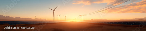Voltage Power Grid Landscape - Expansive View of Power Lines and Electrical Infrastructure Spanning the Horizon